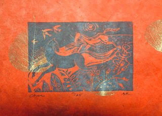 The beauty of prints is that you can create multiple versions with a variety of color patterns or black and white. It gives you the option of using color or not and having multiple images to work with. Each print is unique and different. All are printed on archival paper or handmade paper. All are for sale and I have multiples of each. Contact me for inquiries.