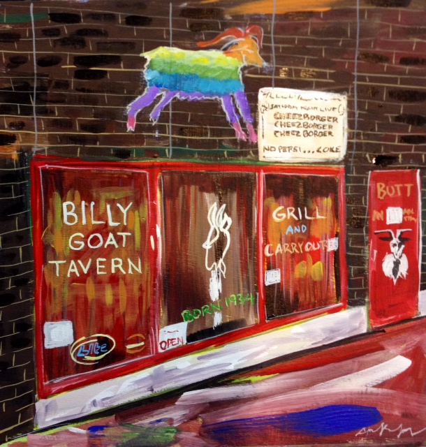 Day 4 "Billy Goat Tavern" 10" x 10", Acrylic on board