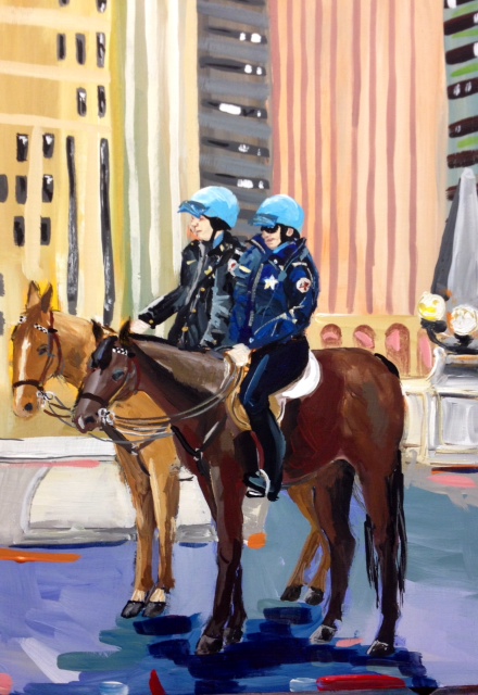 Painting number 28 of 30 is "Blue cowboy" In honor of our city's protectors. 14"x10"