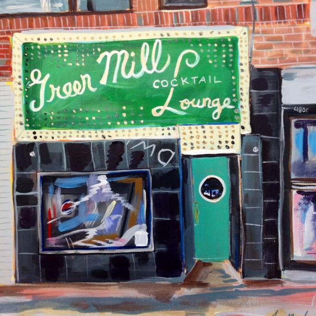 Day 19 of 30 day painting challenge is " Green Mill" 12'x12" Al Capone, Moulin Rouge Red Mill, Poetry Slam, Movies and more.