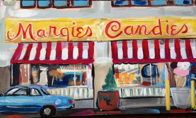 Day 6 "Margies Candies" 14" x 8", Acrylic on Board