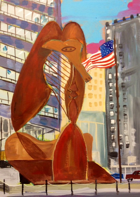 Day 17 painting "The Chicago Picasso" 14" x 10".