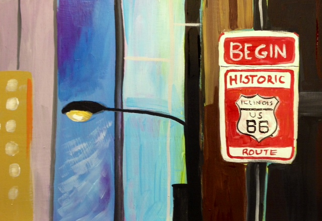 "Route 66" 6" x 8" begins in Chicago Painting number 30. One more to go to complete the month.