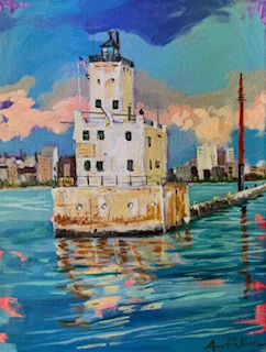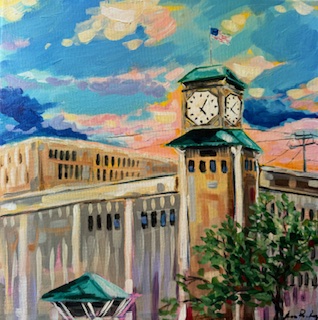 The Allen Bradley Clock Tower was the largest four faced clock in the world from 1962- 2010 and was built as the village clock for South Milwaukee. It was nicknamed "Polish Moon" as it towers over a once predominantly Polish neighborhood. I also chose the Allen Bradley Clocktower as my first painting to pay homage to Peg Bradley, who donated an incredible modern art collection to the Milwaukee Art Museum. I am forever grateful to her eye for collecting and her contribution to our great city.