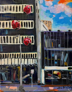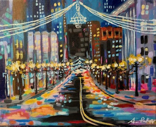 Day 14, "City Lights", 8x10, Acrylic on canvas.