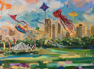 Day 3, "Kites at Veteran's Park", 9x12, Acrylic on canvas