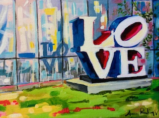 Robert Indiana's sculpture in front of the MAM. Indiana's LOVE series is iconic, with endless meanings and implications. The bold graphic style of the lettering is part of the artist's appropriation of advertising, giving this particular work a flavorful punch. This emotionally generous and accessible body of work requires us to live up to its simple message of Love. Check out his series LOVE!