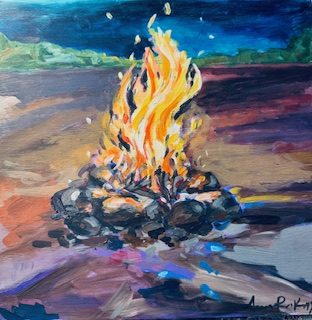 Day 24, Stories Around the Fire, 10x10, Acrylic on birch artist board